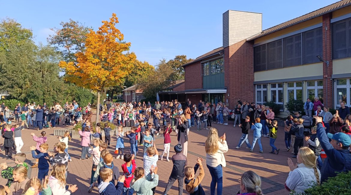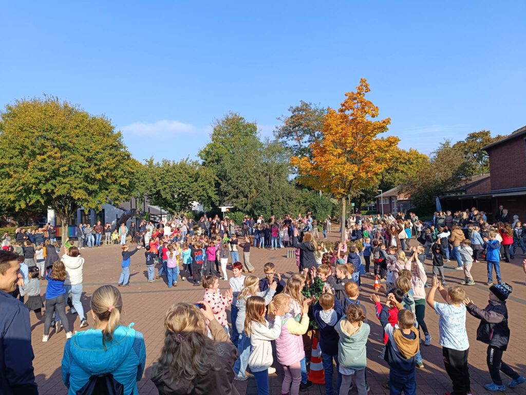 Am letzten Schultag vor den Herbstferien fand traditionell unser Herbsttanz mit allen Klassen statt. Mit großer Begeisterung bewegten sich die Kinder zur Musik und führten den Tanz auf. Beim zweiten Durchgang waren auch die Eltern und Angehörigen herzlich eingeladen mitzutanzen.